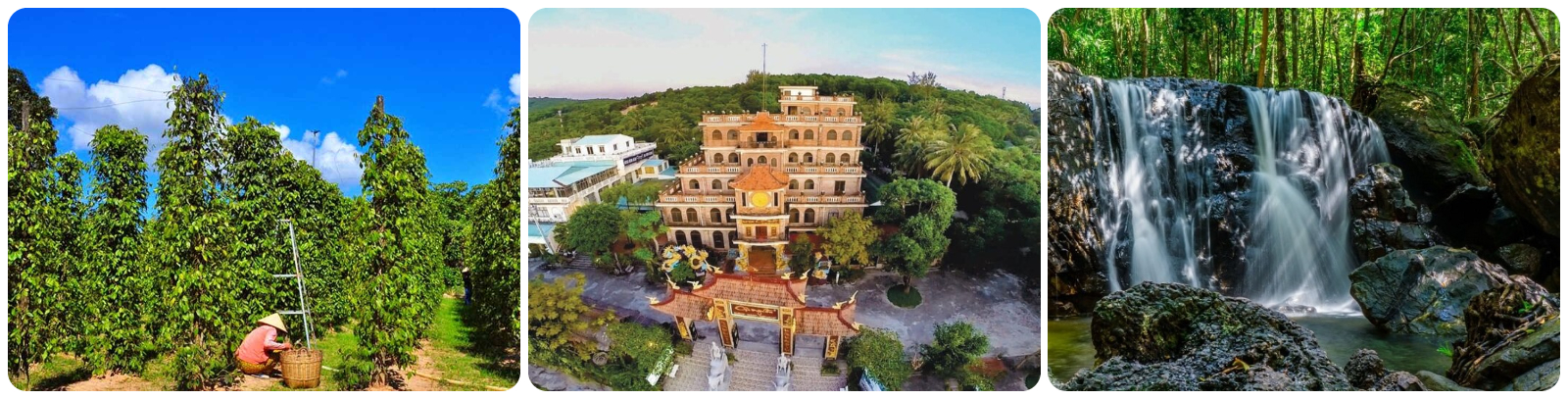 - Hồ tiêu Phú Quốc: tìm hiểu về cách trồng tiêu tại vườn. Tiêu Phú Quốc nổi tiếng với hạt to, đen và cay thơm. Du khách có thể mua tiêu về làm quà tại nhà vườn.