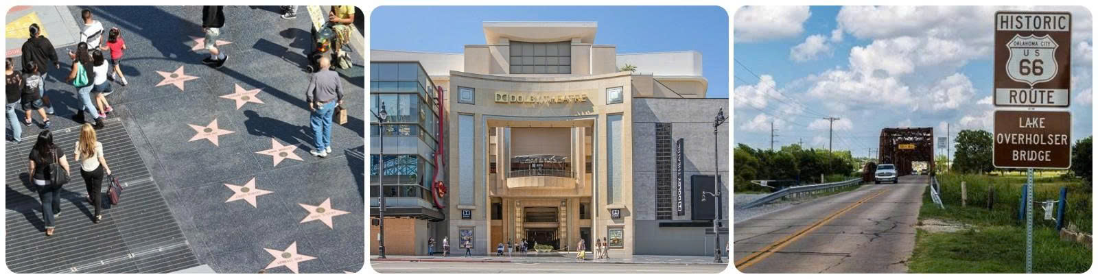 - Đại Lộ Danh Vọng – nơi lưu danh những ngôi sao nổi tiếng có đóng góp lớn trong làng điện ảnh, truyền hình, âm nhạc của Hoa Kỳ.