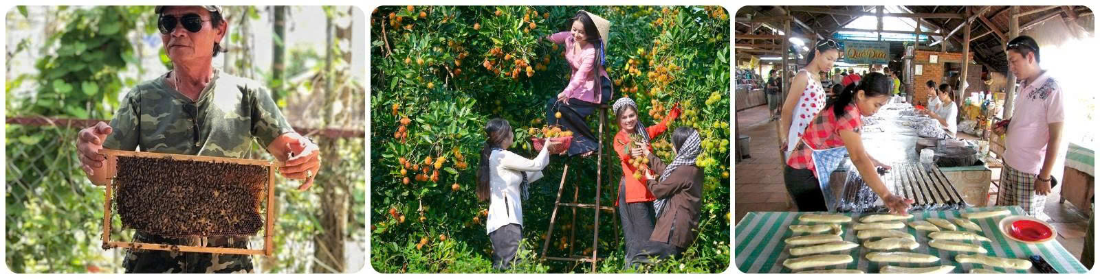 - Đến CỒN LÂN: Quý khách tham quan LÒ MẬT ONG, thưởng thức trà mật ong cùng với mứt trái cây. Sau đó hướng dẫn viên đưa đoàn dạo quanh làng, khám phá cuộc sống của người dân Miền Tây sông nước.