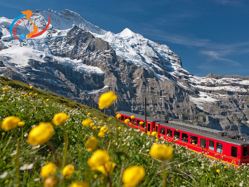 Đi tour Thụy Sĩ, ngắm cảnh mùa thu trên chuyến tàu Golden Pass chắc chắn sẽ mang đến cho bạn những trải nghiệm vô cùng mới lạ. Với thiết kế cửa kính lớn nằm ở hai bên cùng với hệ thống đường ray độc đáo, chuyến tàu này sẽ đưa du khách đi qua rất nhiều nơi, từ thung lũng cho đến núi cao ở Thụy Sĩ.